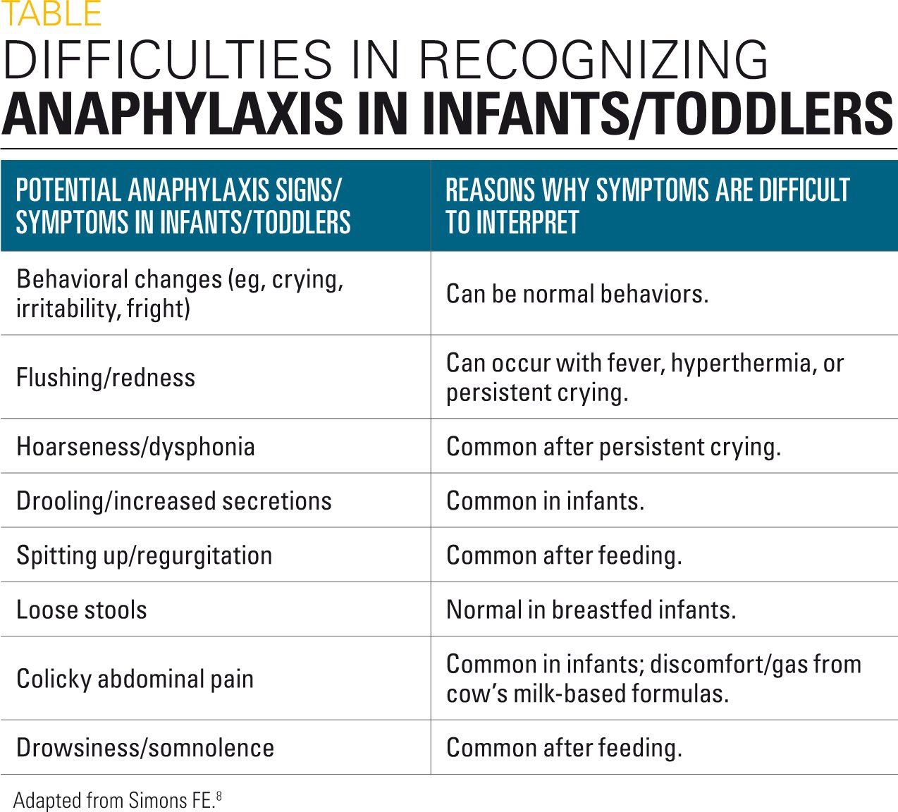 It can be fatal in infancy. Symptoms of anaphylaxis in babies and children can include. This topic reviews the unique features of anaphylaxis in infants.